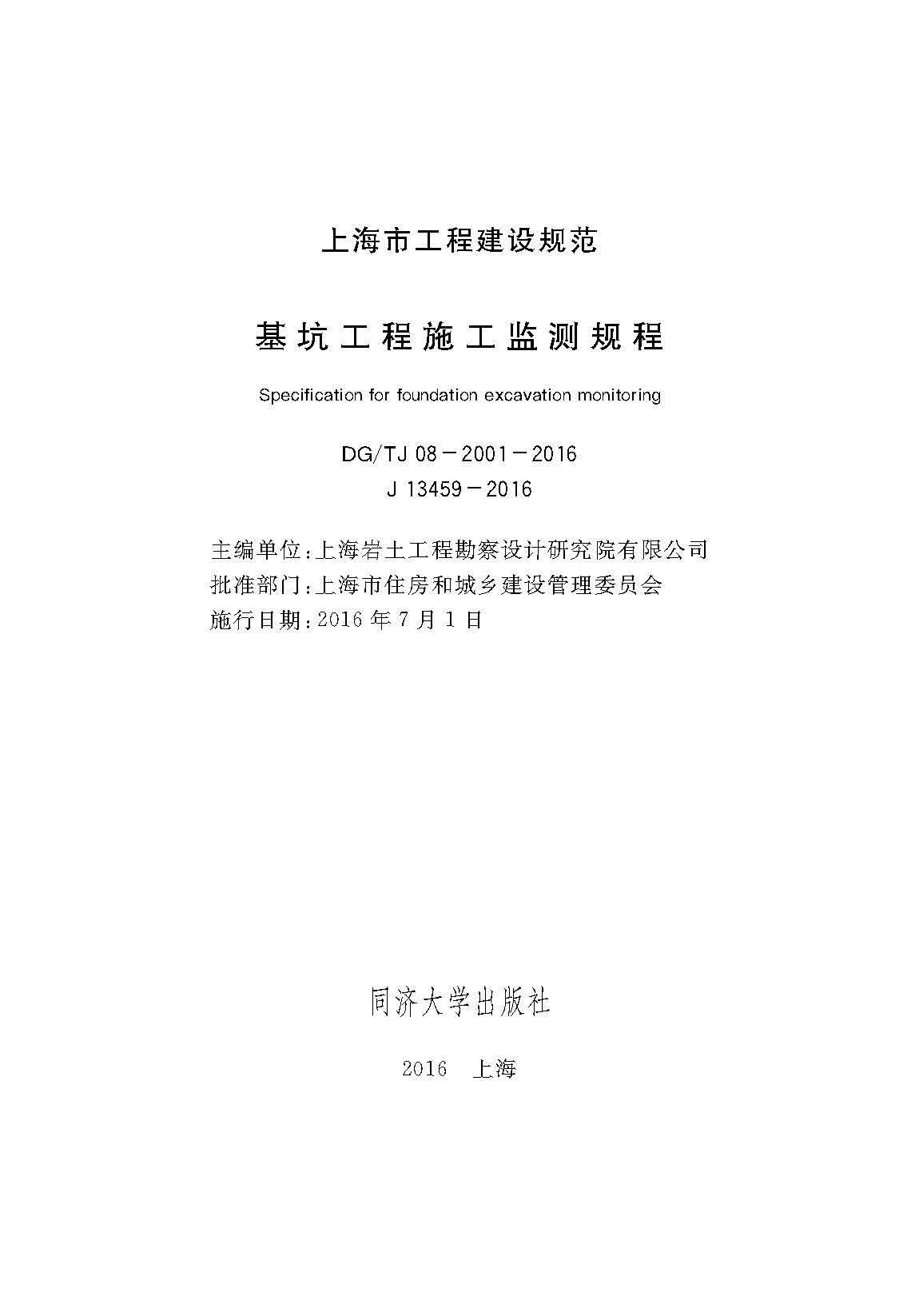 DGTJ 08-2001-2016 基坑工程施工监测规程