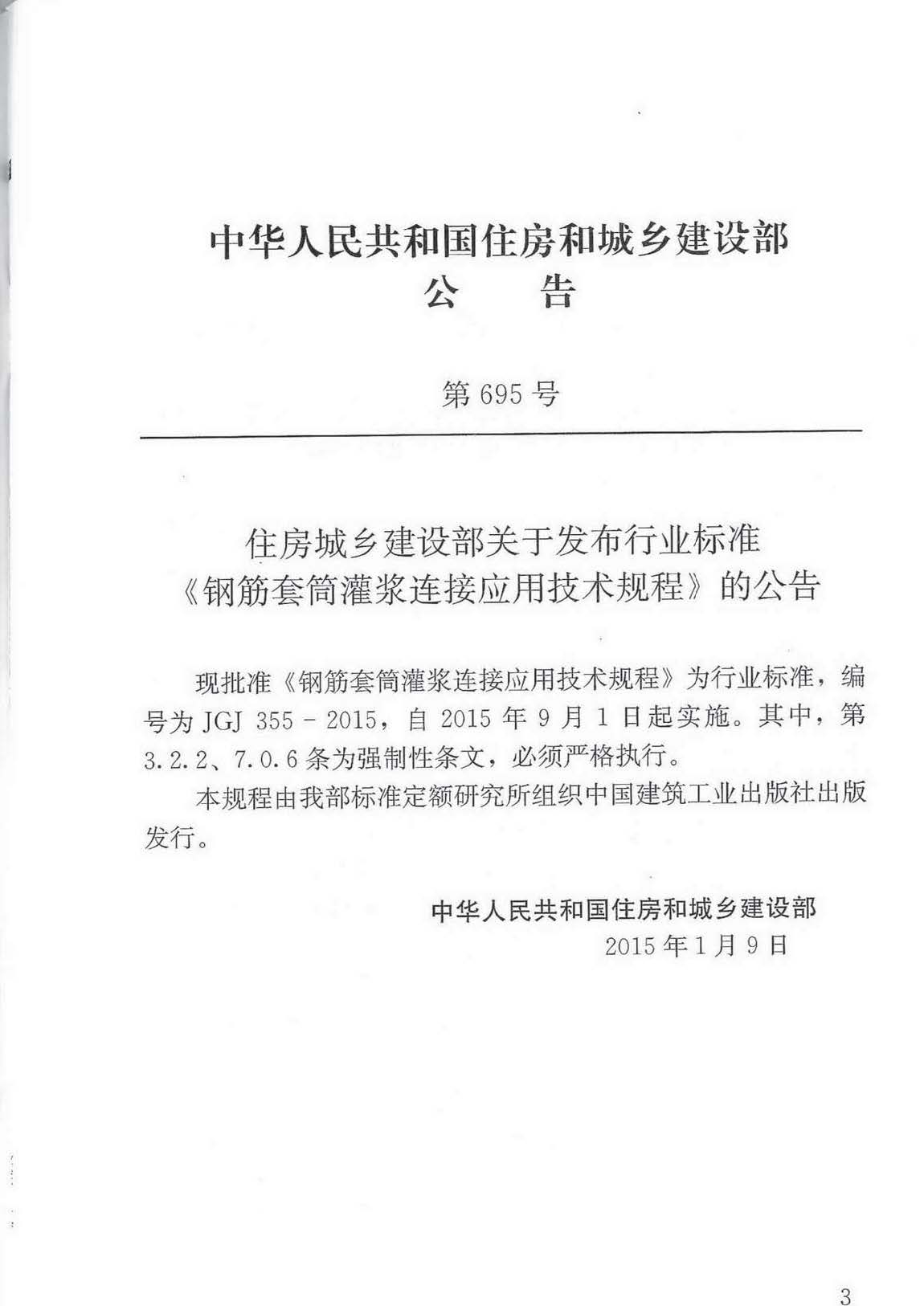JGJ 355-2015 钢筋套筒灌浆连接应用技术规程