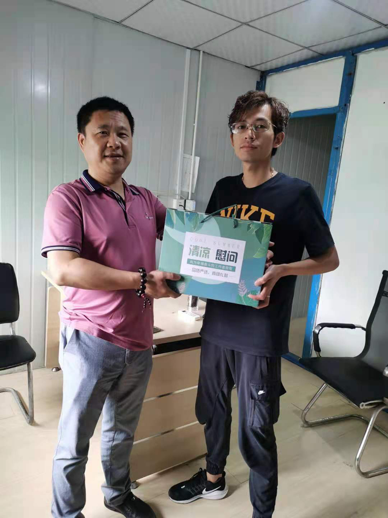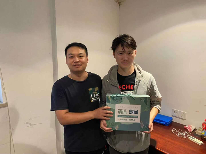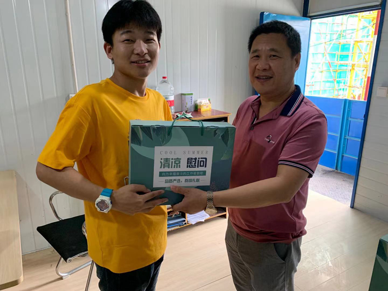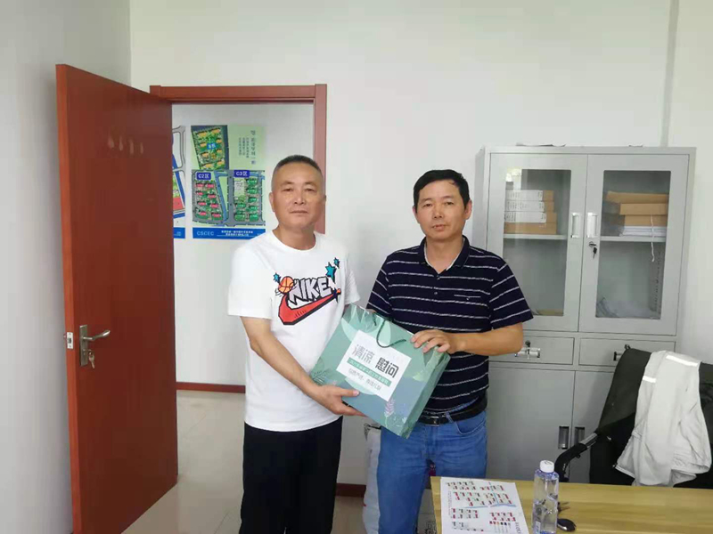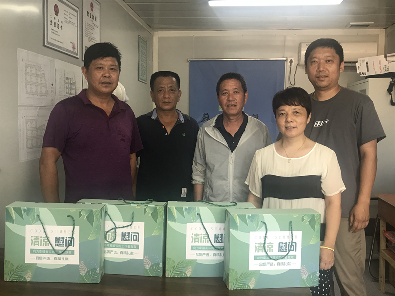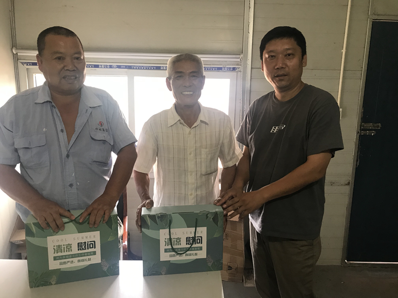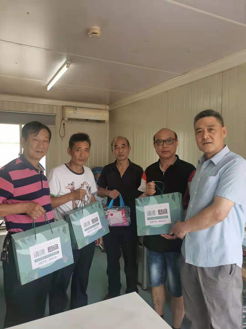 关爱职工 夏送清凉 2021年7月28日 公司各事业部经理夏季下基层工地慰问、分发夏季劳防用品。