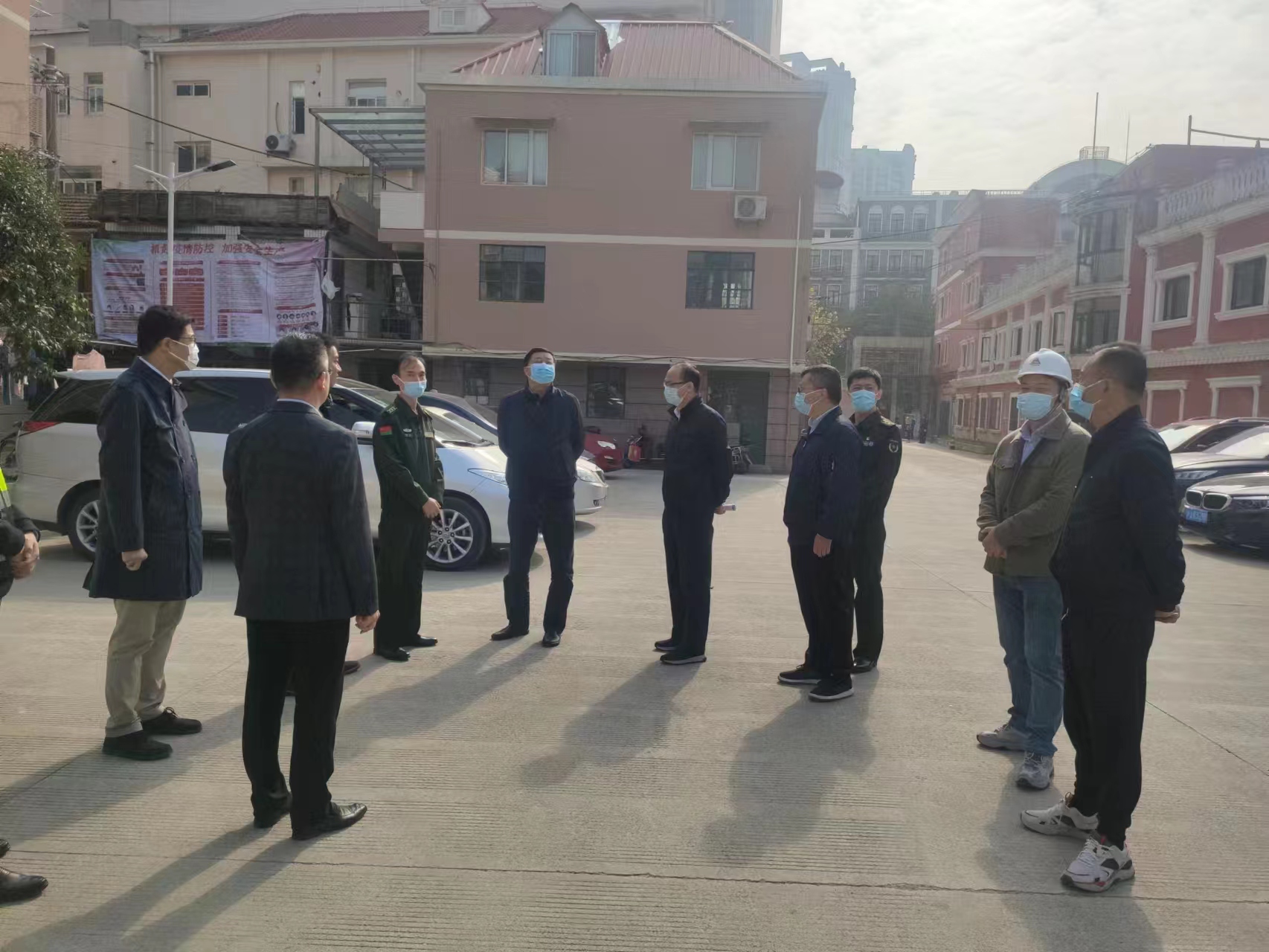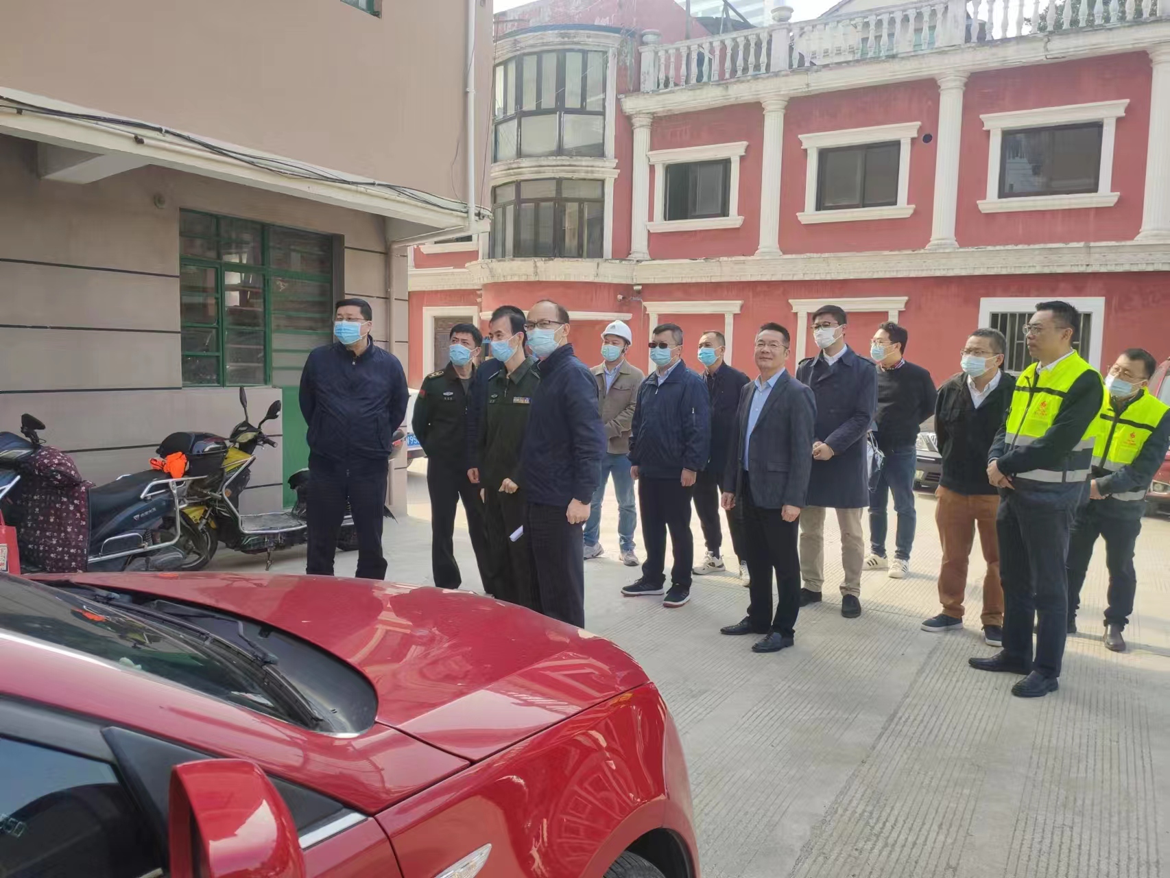 2022年11月15日,区委常委、副区长岑福康,区房管局局长沈建忠及副局长马彬等领导一行莅临愚园路792号小区部队房屋修缮项目现场指导工作。