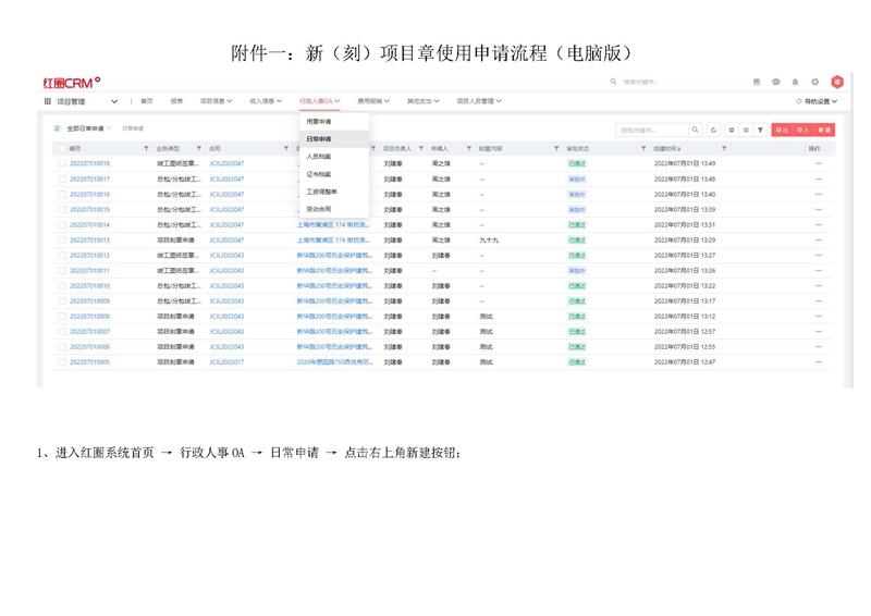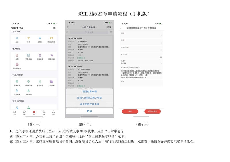 关于公司红圈系统新刻项目章、项目(总包、分包)网上竣工确认申请及竣工图纸签章流程