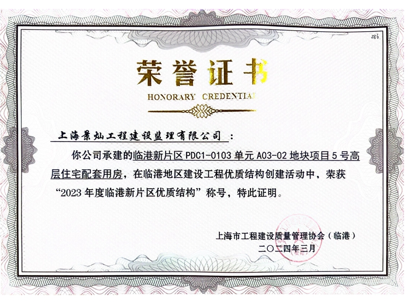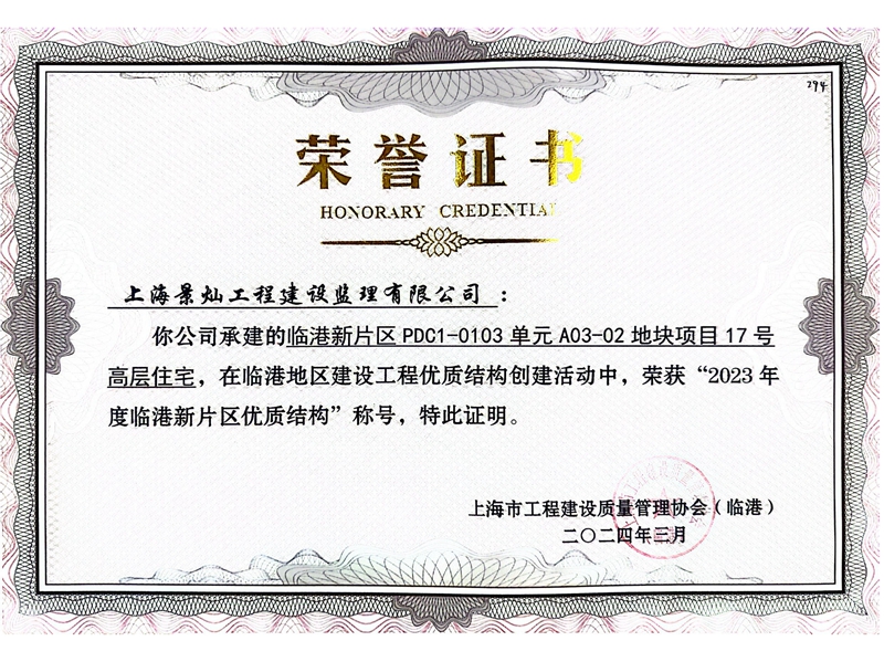 临港新片区 PDC1-0103单元 A03-02 地块项目位于浦东新区南汇新城镇,项目总建筑面积约为157982.06平方米,其中地上建筑面积109946.24平方米,地下建筑面积48035.82平方米;在2023年度临港地区建设工程优质结构创建活动中,2#高层住宅配套用房、3#高层住宅配套用房、5#高层住宅配套用房、6#、7#、8#、9#、10#、11#、12#、13#、15#、16#、17#、18#高层住宅“荣获2023年度临港新片区优质结构”称号.