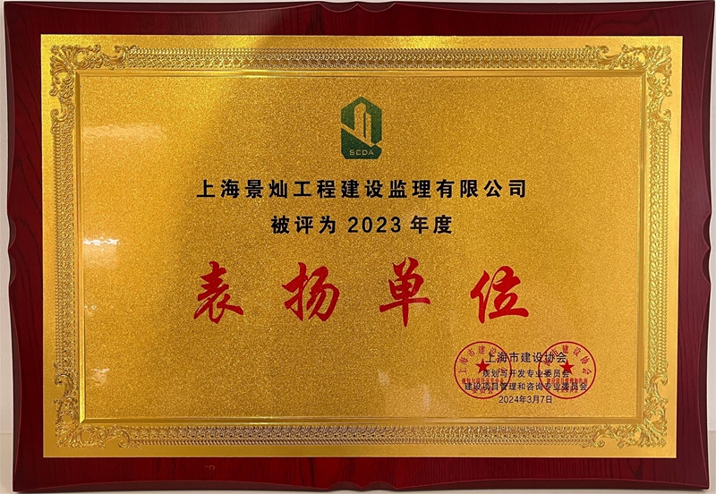 近日,根据上海市建设协会公布2023年度上海市建设协会规划与开发、项目和咨询专委会评选结果文件通知,上海景灿工程建设监理有限公司再获殊荣,被评为2023年度“表扬单位”。