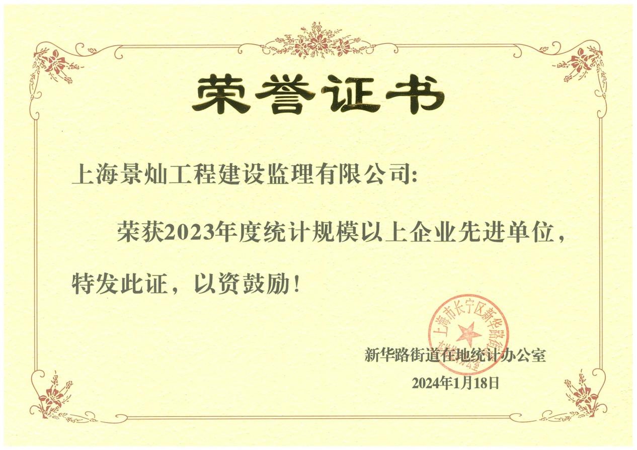 喜报!景灿工程被评为2023年度统计规模以上企业“先进单位”