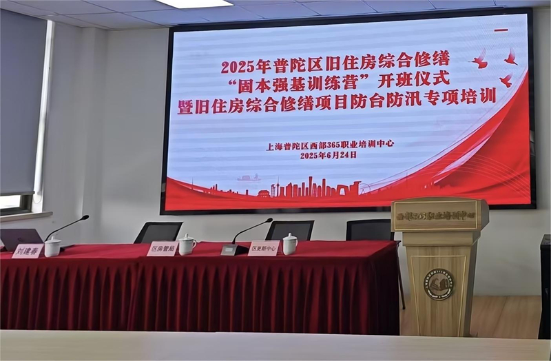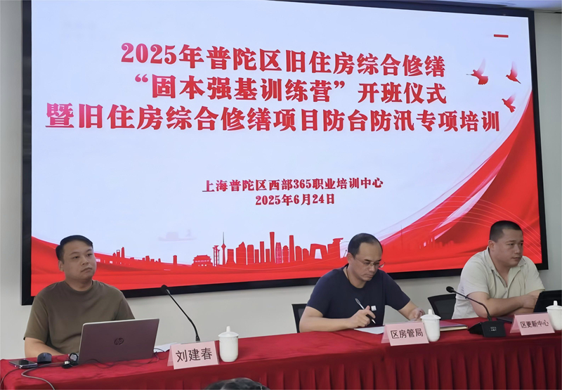 2025年6月,我司刘建春同志作为专家的**2025年普陀区旧住房综合修缮“固本强基训练营”开班仪式暨防台防汛专项培训,在上海普陀区西部365职业培训中心成功举办。本次培训作为训练营的首个核心模块,聚焦汛期安全风险防控,区房管局、防汛办相关领导出席,全区各旧住房修缮项目实施单位负责人、工程管理人员及安全监管骨干等参训。