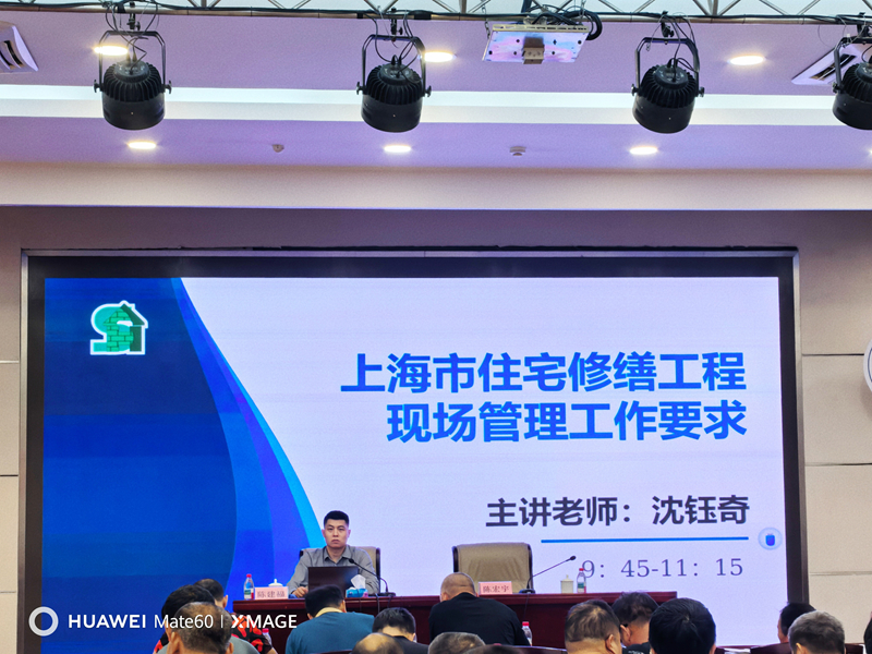 为持续提升本市住宅修缮工程领域人才队伍的专业素养与实操能力,推动城市更新与居住环境改善工作高质量发展,上海市房屋修建行业协会于今日正式启动“2025年上海市住宅修缮工程从业人员强化教育培训”。我司工程部副总经理沈钰奇同志就“上海市住宅修缮工程现场管理工作要求”做专业授课指导,为来自全市的修缮工程骨干力量传道授业。